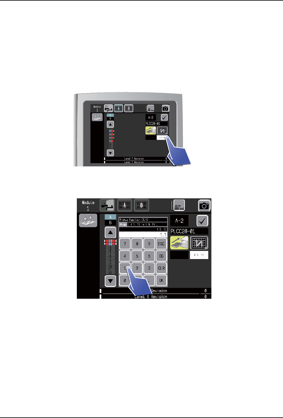2. 显示吸取点指定画面。请设定吸取点的 X、Y。如图所示按下触摸屏就可以变更 X、Y 的