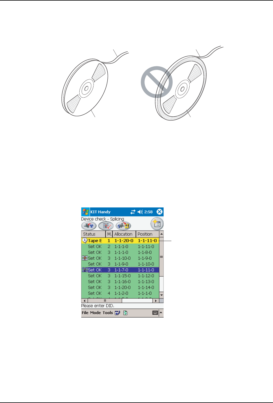 13.如果使用了 Fujitrax,当触摸 KIT Handy 上显示的信息后,就会将完成料带拼接这一事