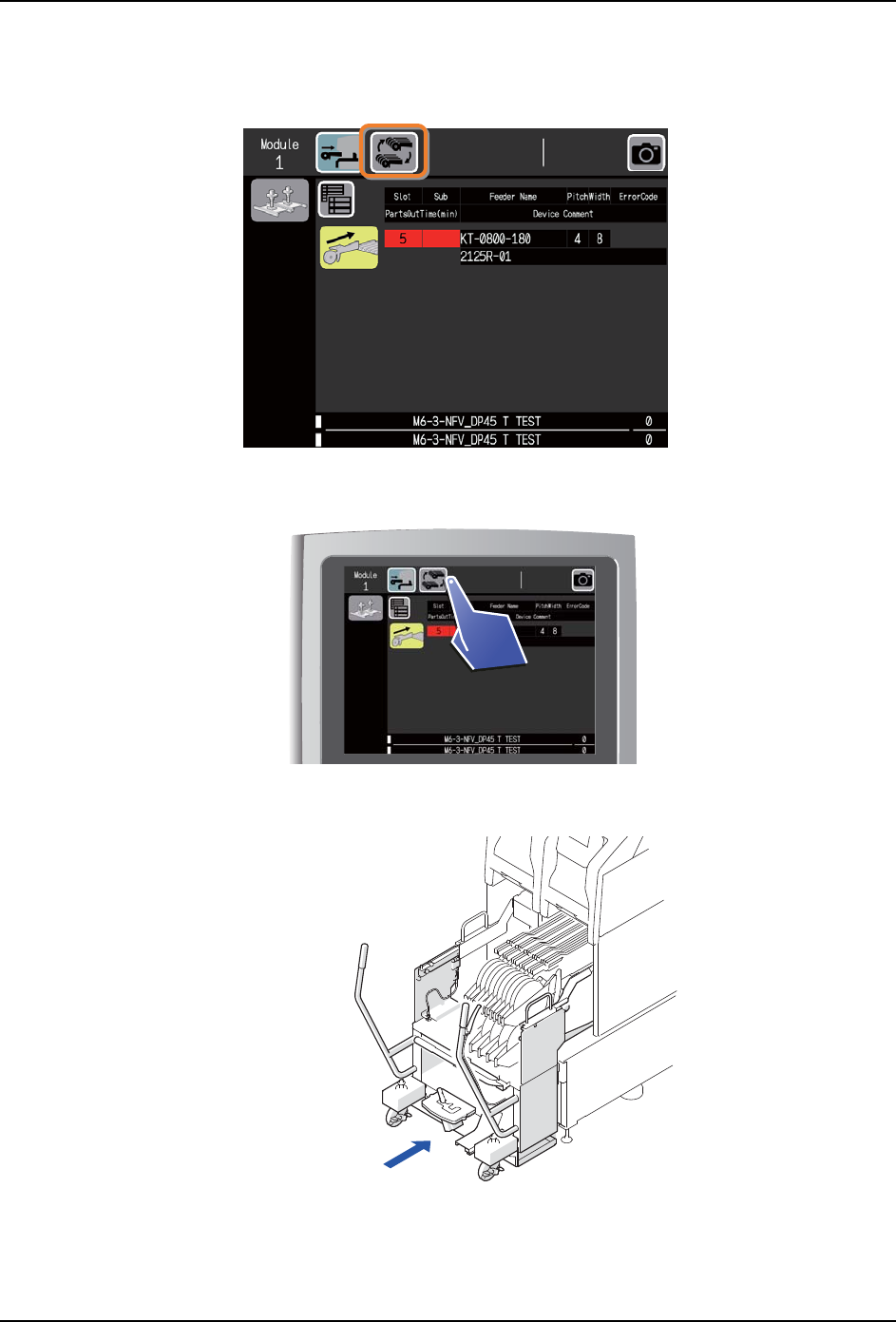 显示在 KIT Handy 或 KIT Manager 上的供料器更换向导显示实际安装着的供料器位置和 Job