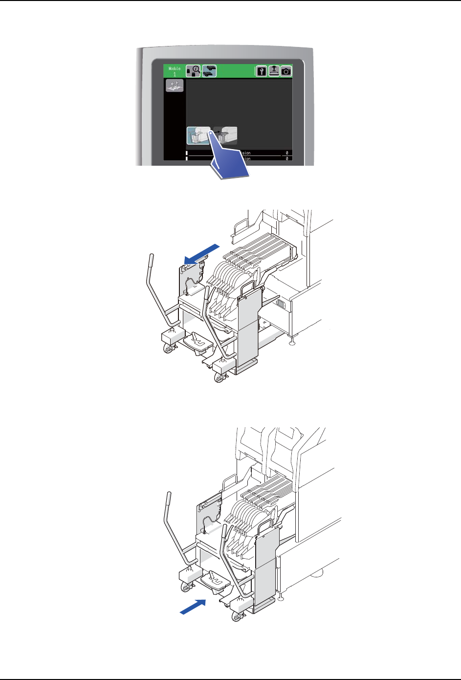4. 请慢慢地拉动 PCU-2,卸下料站托架。