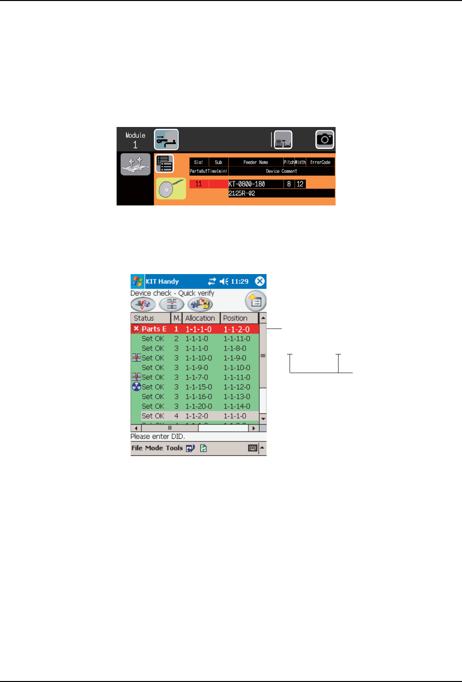 2. 使用 KIT Manager 或 KIT Handy 进行验证。(在将供料器安装到料站上的时候,机器会