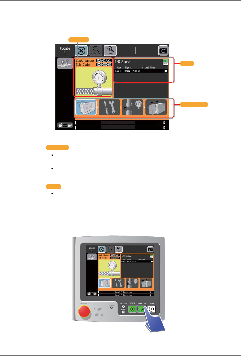 1. 必要时,请按下 [READY ON] 按钮,恢复到通常的生产。