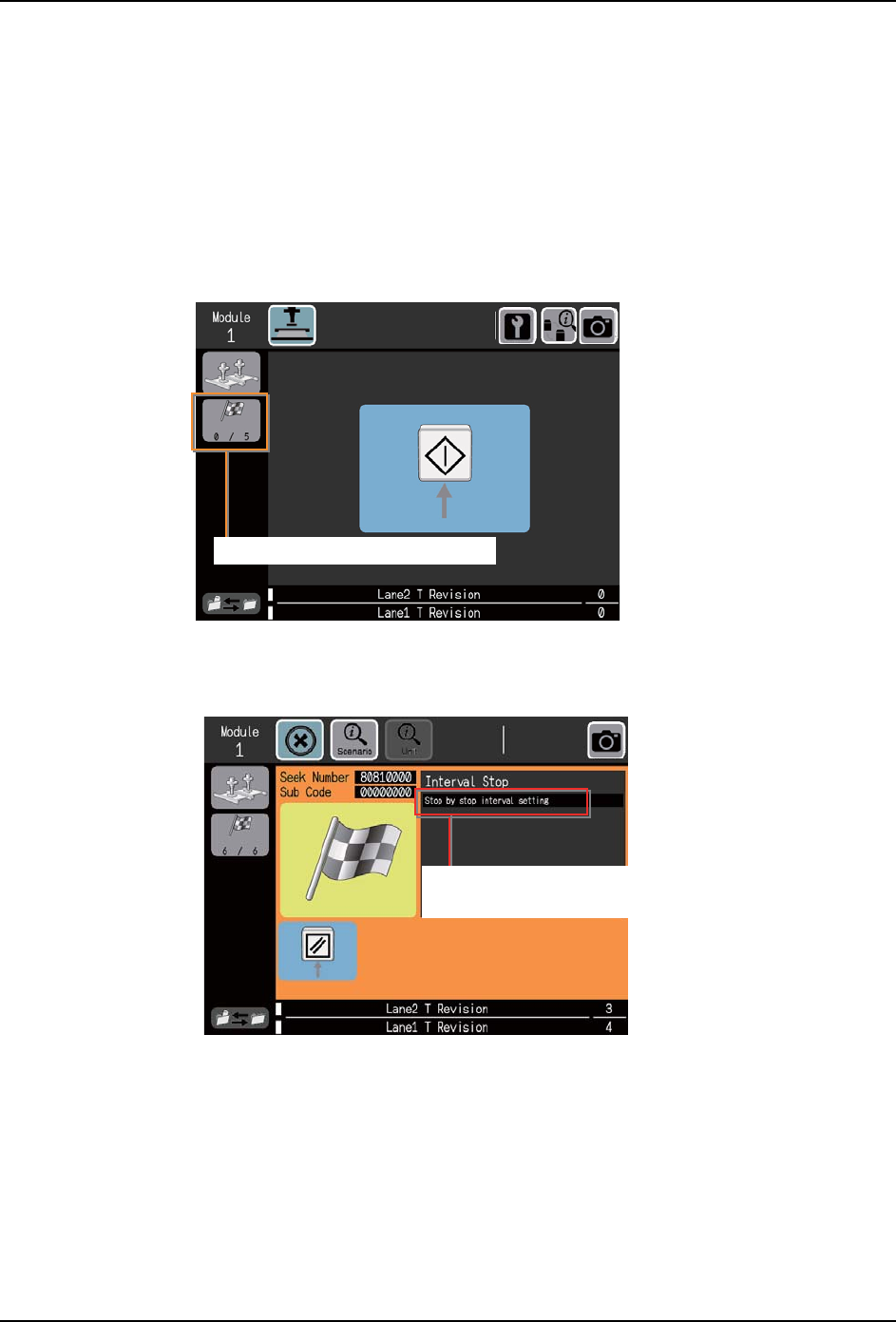 设定了间隔停止后,操作画面上的状态区域会变化如下。