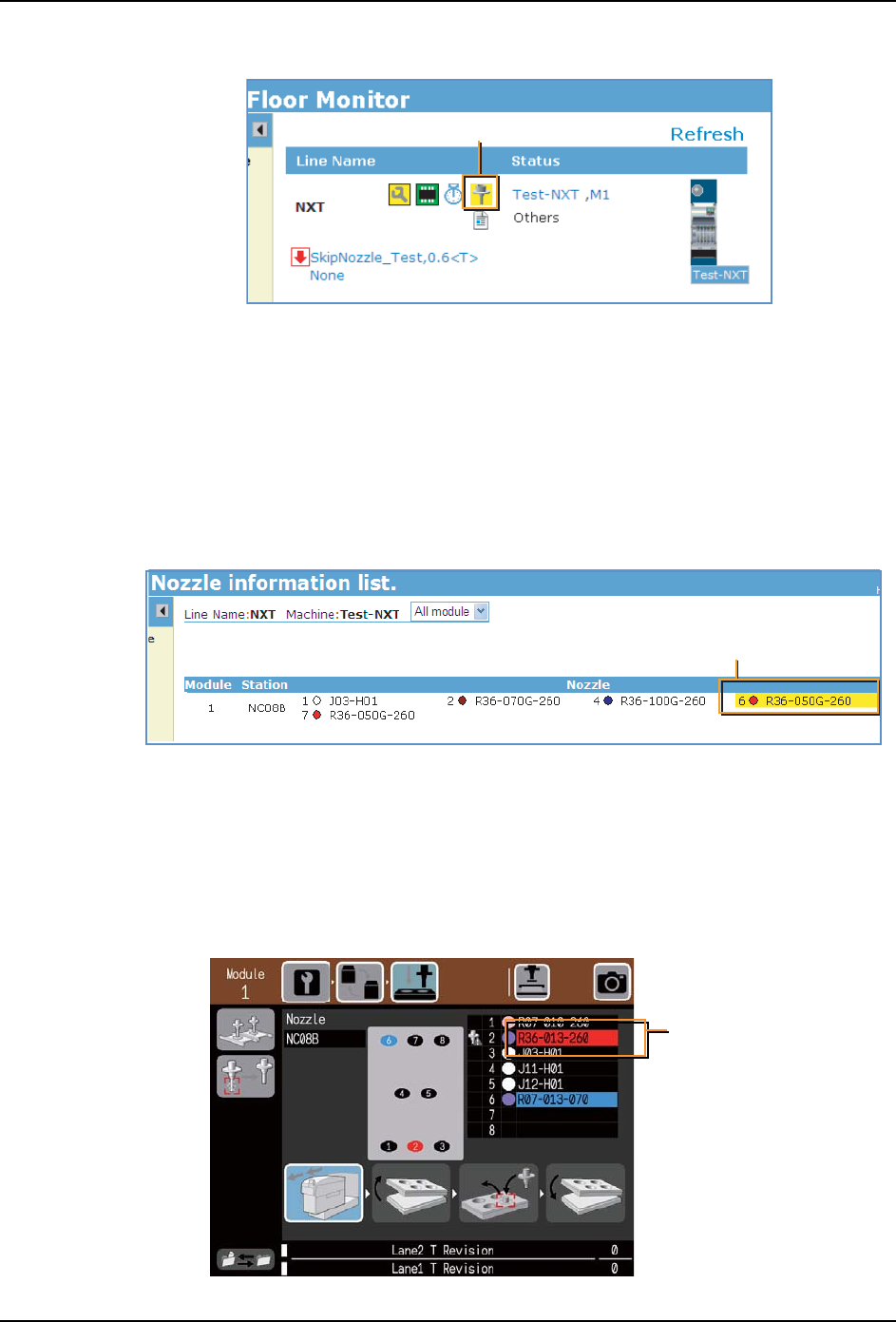 2. 在 Nozzle Information List 中确认需要维修保养的吸嘴。以高亮度显示的吸嘴别名为