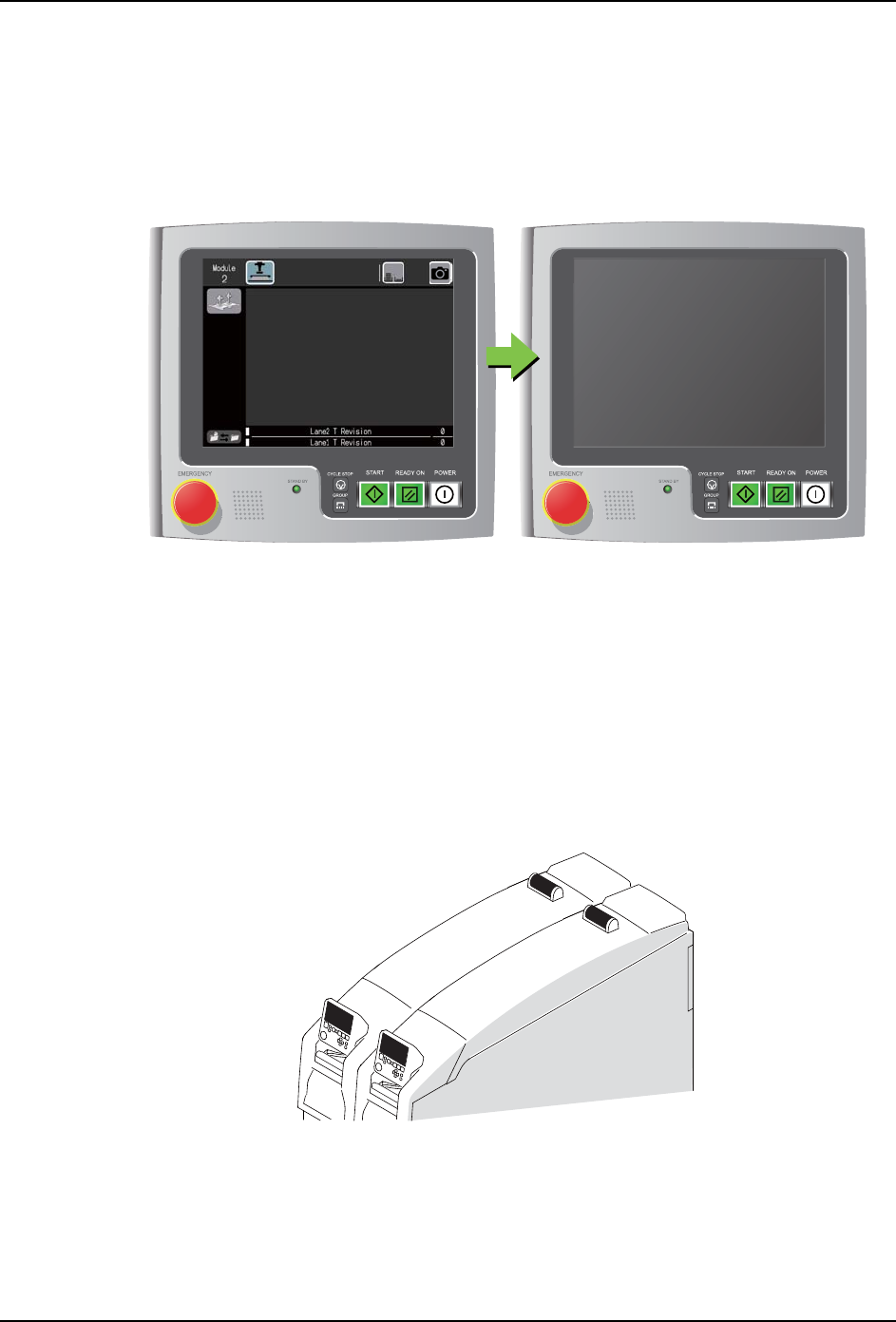 1. 如果生产停止的状态经过了所设定的时间,机器就会变成节能模式,停止搬运轨道、各