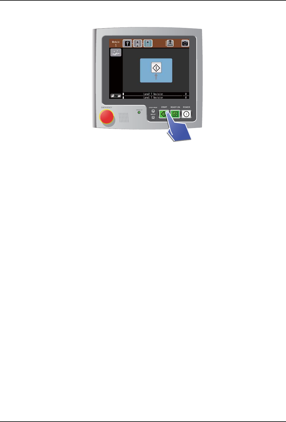 3. 显示工作头退避的等待开始画面。按下 START 按钮,工作头就开始移动。