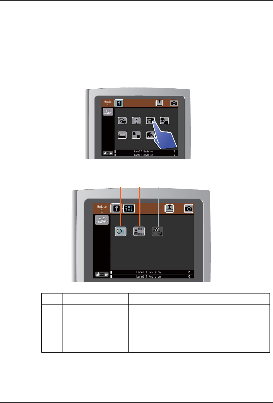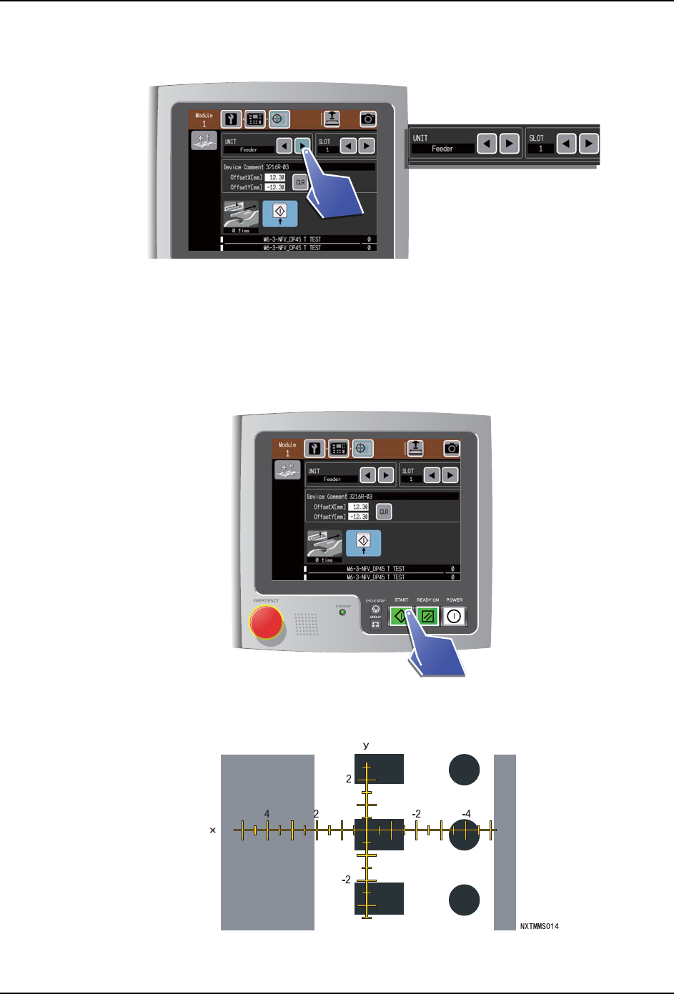 2. 直到显示吸取位置确认装置及料槽编号为止,请一直按下三角按钮。只有在 Job 中指定
