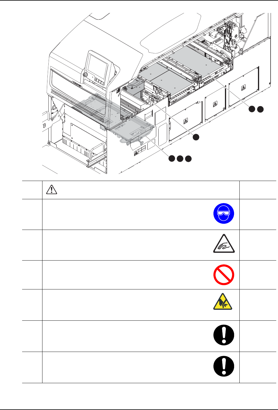 1. 安全指南 SYS -NXT3-002S0 10 N XT III 系统手册 01MEC-1552 17 18 19 相关章节 17 运转刚刚停止后,请不要直接触 摸 Y 轴的线性马达部分。 4.9 4.11 ·线性马达的轴和线圈部分即使 在运转停止后也处于高温状 态,用手触摸有可能灼伤。 18 请使用心脏起搏器的人员不要靠 近 Y 轴的线性马达 (作业时 请保持 400m m 以上的距离 ) 。 ·线性马达可以产生强大磁场。 有可…
