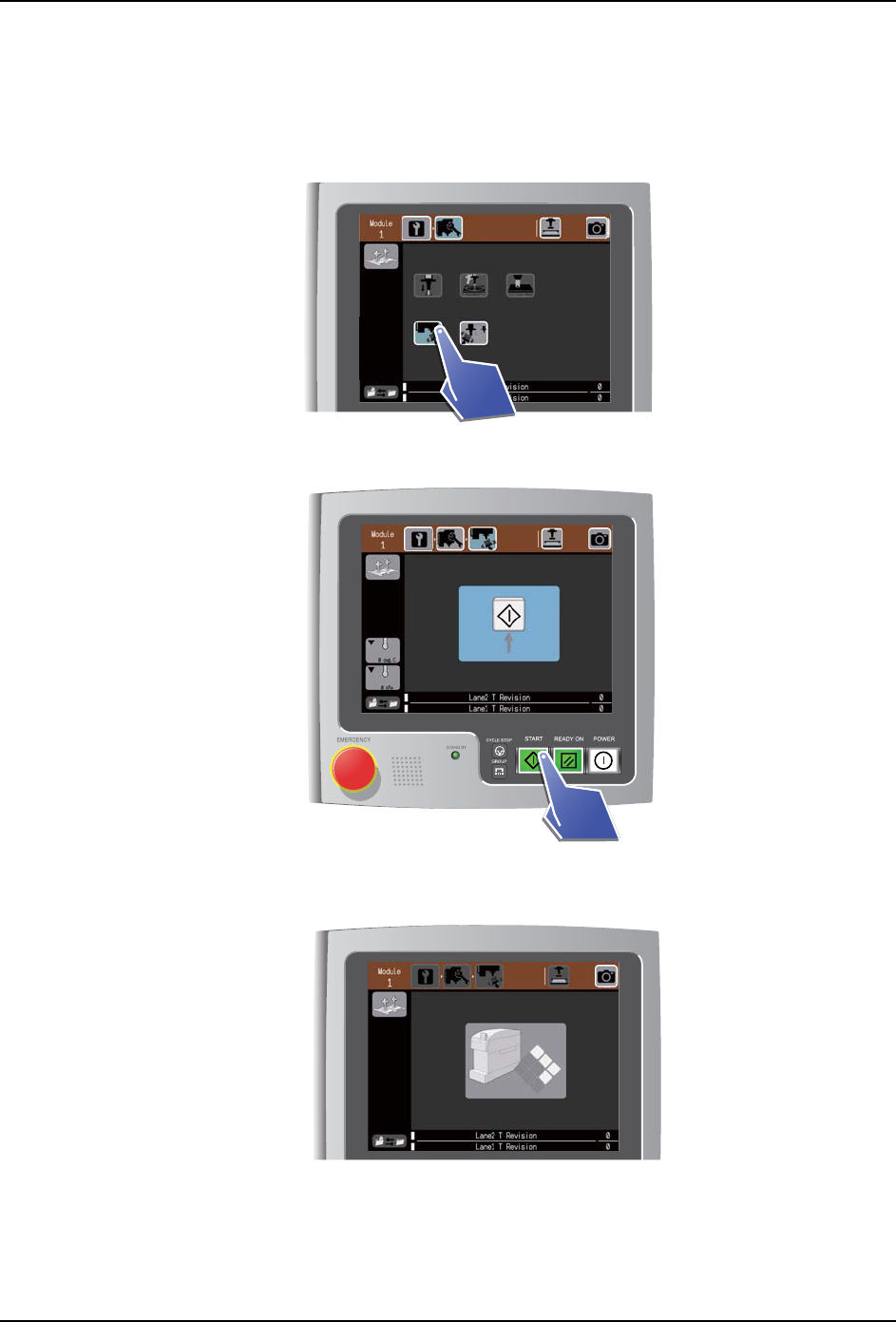7. 手动模式指令的操作 SYS-NXT3-002S0 290 NXT III 系统手册 7.8.5 清扫全部吸嘴 该指令使用在安装了供料器型刷 洗装置或吸嘴置放台型刷洗装置 的模组上。 执行该指令后, 清扫安装在工作头上的吸嘴和热 补正定位点。 1. 请选择清扫全部吸嘴的指令。 2. 显示清扫全部吸嘴等待 START 待ち画面。请按下 START 按钮。 备注 )在执行指令的这段时间 ,显示机器动作中的示意 图。当完成指 令后,就会 …