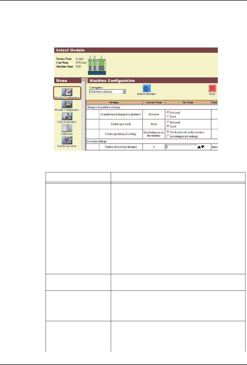 1. 单击 [Menu] 的 [Machine Configuration] 后,就会显示机器功能设定画面。
