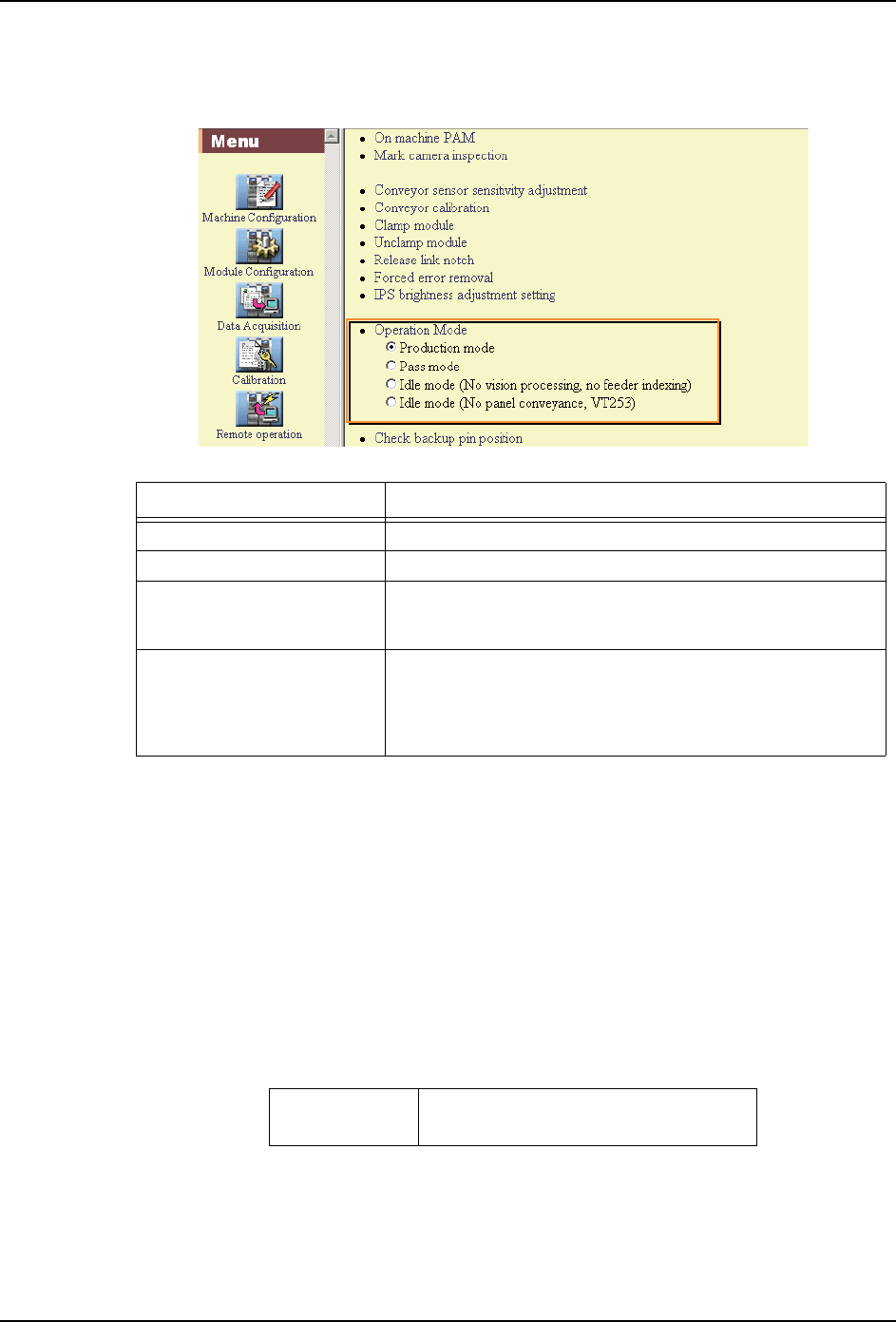 SYS- NXT3 -002S0 9. 各种功能的设定和管理 NXT III 系统手册 341 9.6.5 设定生产模式 生产模式存在 4 种模式。 1. 选择要设 定空运转的模组, 单击 [Remote O peration]。 2. 从一览表中选择生产模式。 3. 单击 [Operation Mode] 。 4. 单击 [Start] 后,就会将指令传 输给所选择的模组。 5. 指令的传输结束后,单击 [Clo se],返回到远程指…