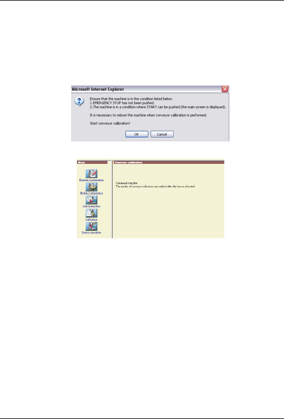 5. 搬运轨道校正正常结束后,就会显示指令结束的信息。然后请重新启动机器。