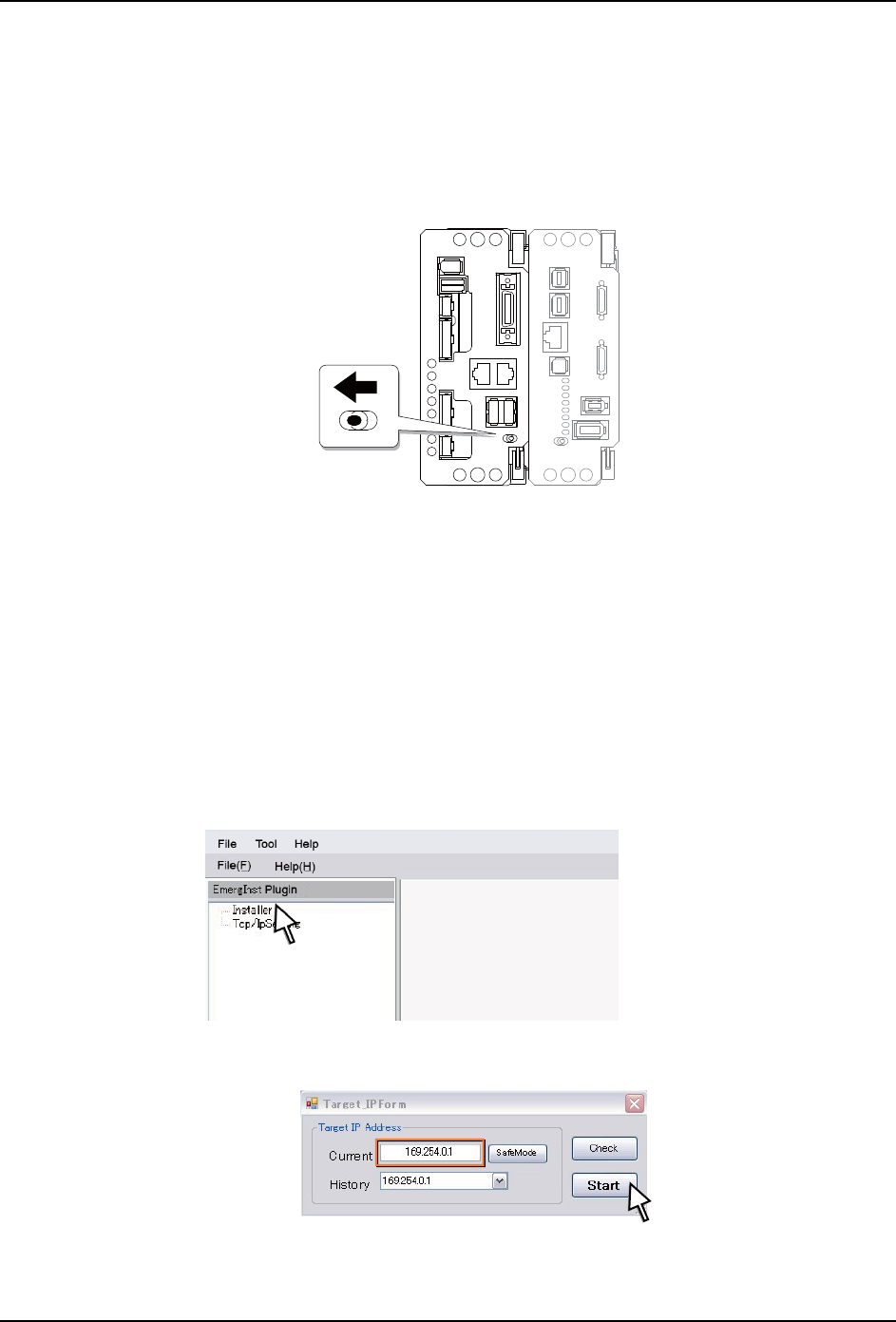 10. 各种软件工具的使用方法 SYS-NXT3-002S0 352 NXT III 系统手册 10.5 EmergencyInstaller EmergencyInstalle r 有以下 2 个功能。 a. Installe r b. Tcp/IP S etting Install er 在因为 以下原因不能启动机器 时使用。 ·机器应用程序的安装作业因为 停电或者网络的通信异常而中断 此时需要进行 C PU 的恢复作业。 请将 P…