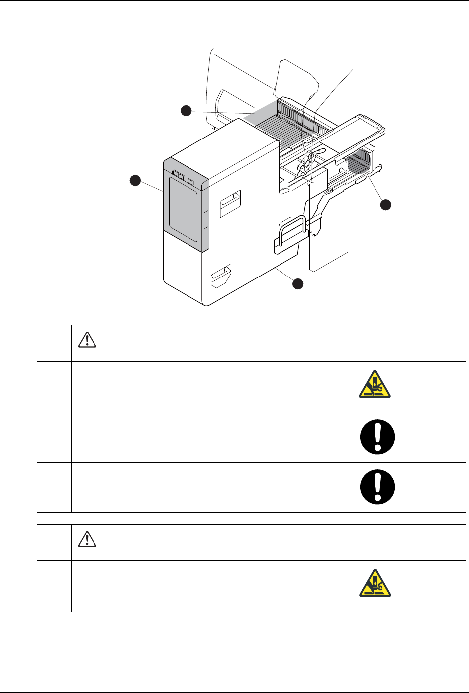 ·手指有可能夹在料盘装置 -M 与料站托架之间而受伤。