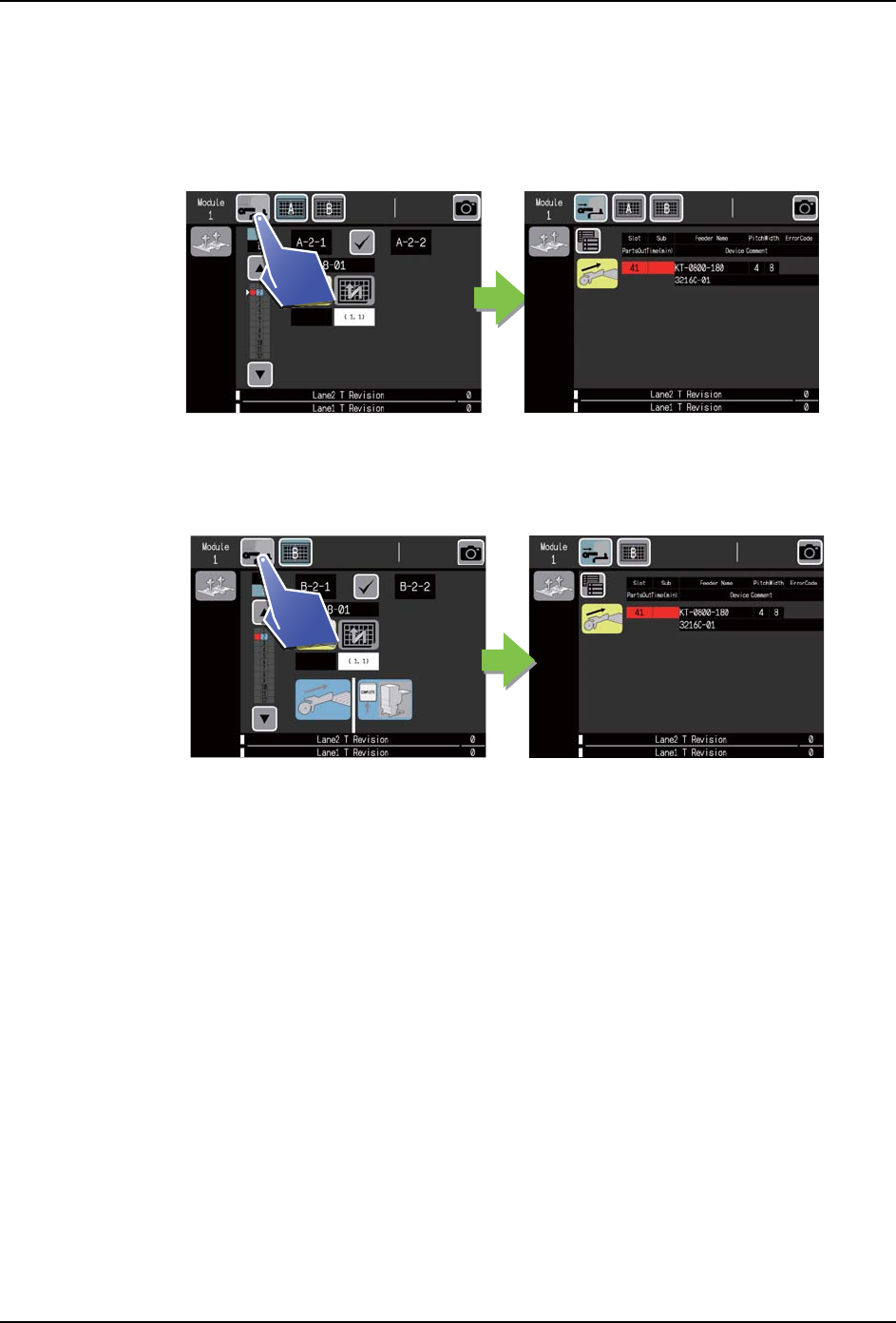 SYS- NXT3 -002S0 4. 生产准备 NXT III 系统手册 69 4. 供料器安装结束后,请按下安装供 料器的料槽 No. 的安装按钮。如果安装类型以及 间距 正确的安装供料器后,LE D 就会变为绿色。 备注 )使用了 Fujitrax Verifier 时,则不需要该操作 安装供料器后, 按下正面门上的安装按钮后, 在向导画面上就会显示 安装结束的料槽信息。 再次按下后就会消去安装信息的 显示。 01SYS-0666…