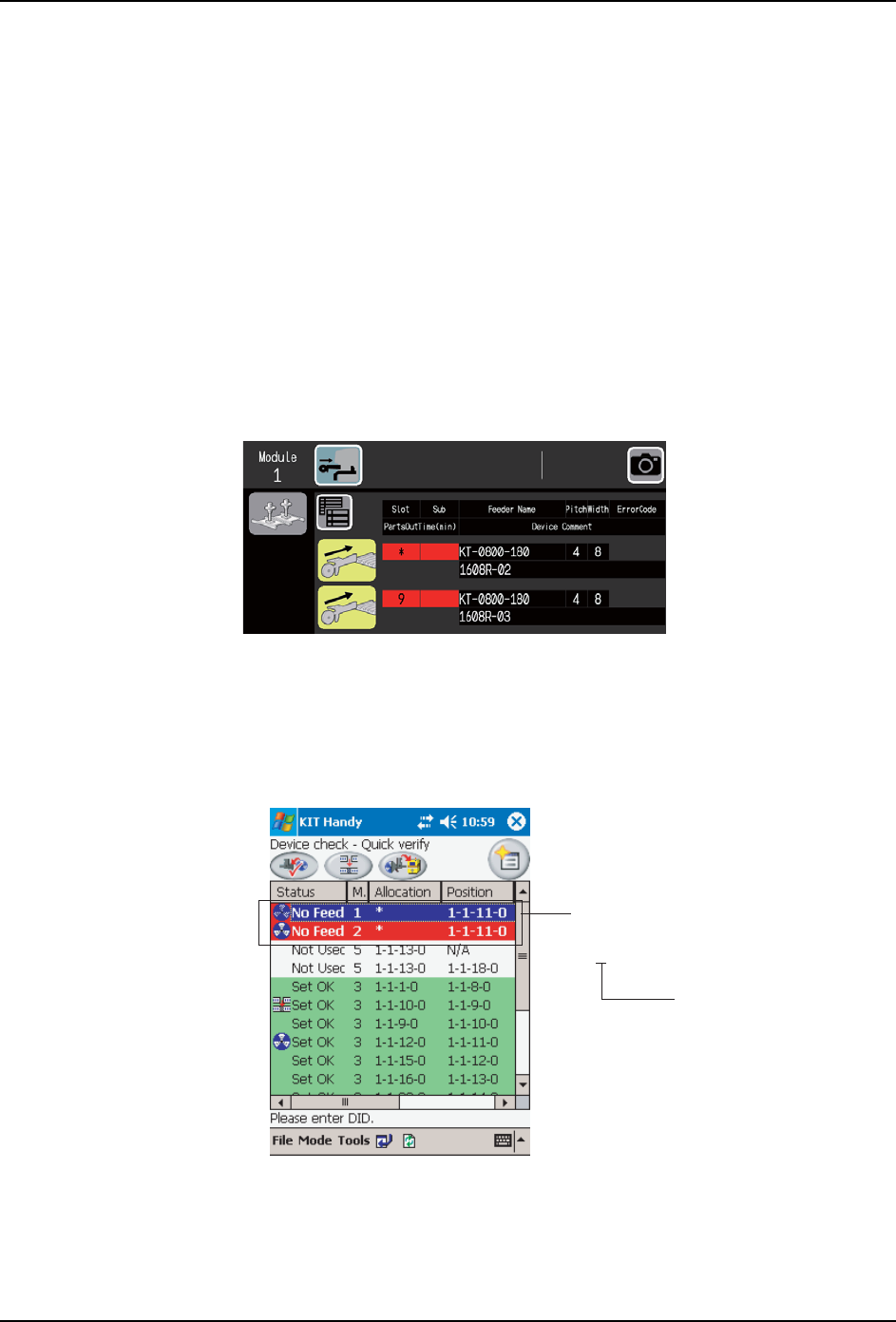 KIT Handy 中的向导可以在元件状态列表的 [Status] 中进行确认。对于需要供料器的料槽,