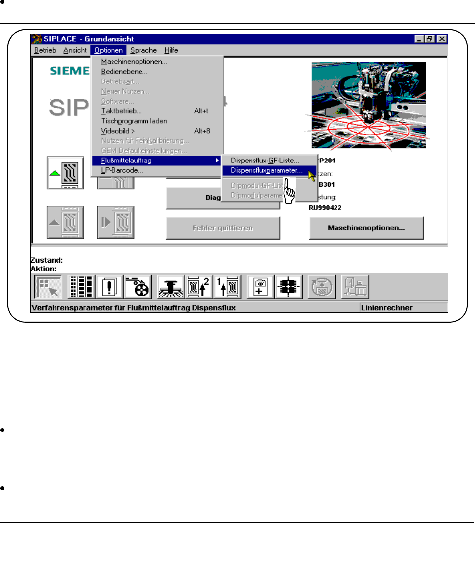 Wählen Sie in der Menüzeile des Menüs Optionen das Untermenü Flußmittelauftrag