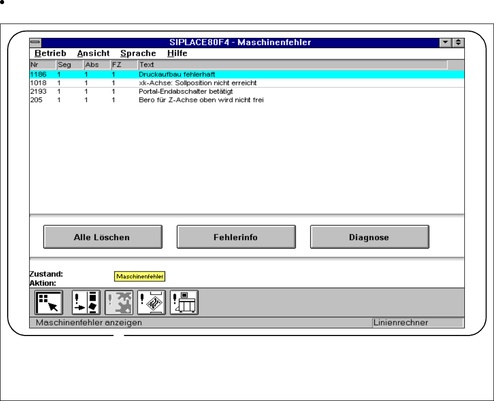 Klicken Sie im Menü „Fehler“ den Symbolknopf für Maschinenfehler anzeigen.