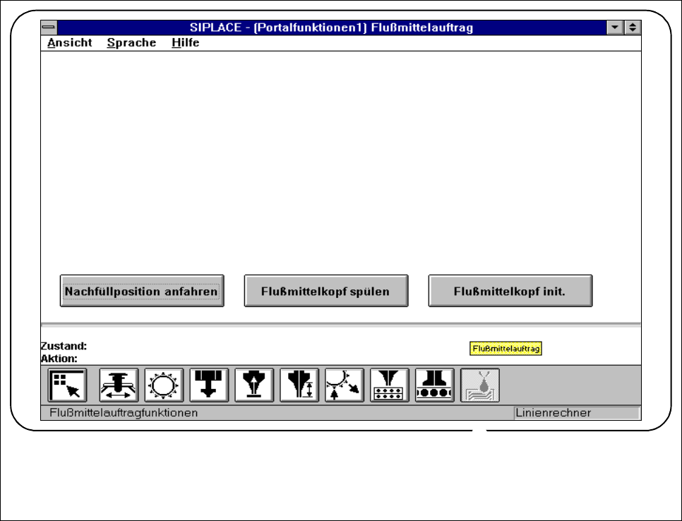 Die Schaltflächen Nachfüllposition anfahren, Flußmittelkopf spülen, Flußmittelkopf init. sind nur aktiv,