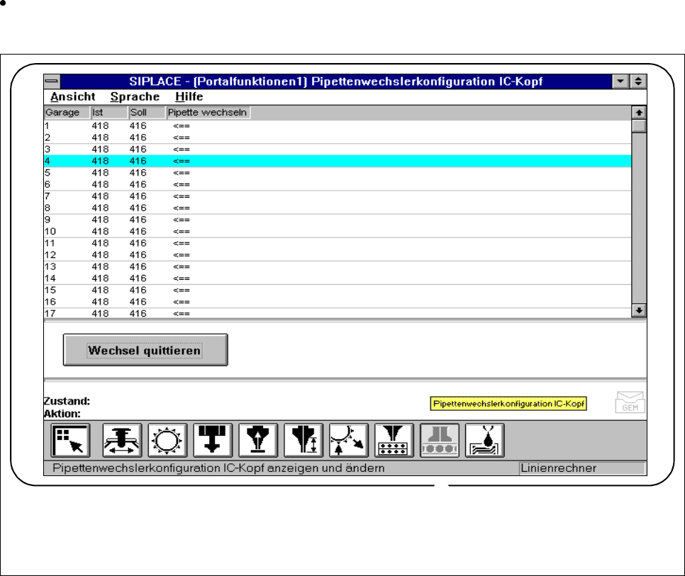 zeichnet), in der jeweilige Pipettengarage auf den "Soll" Zustand.