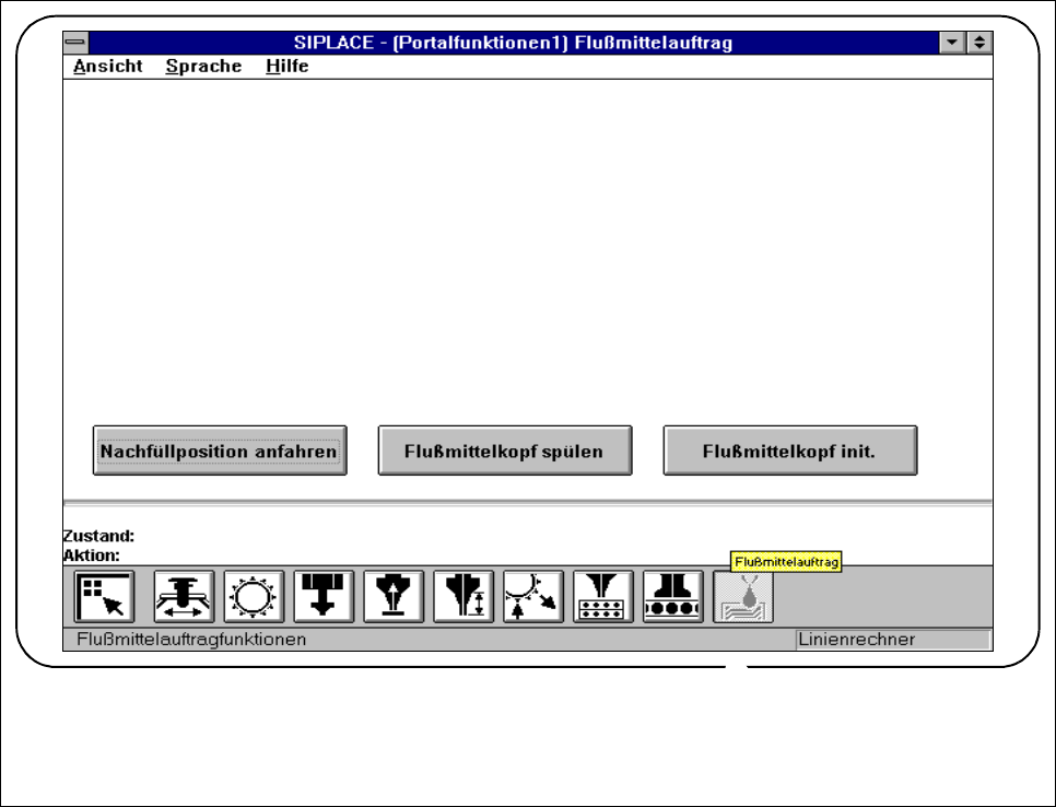 Die Schaltflächen Nachfüllposition anfahren, Flußmittelkopf spülen, Flußmittelkopf init. sind nur aktiv,