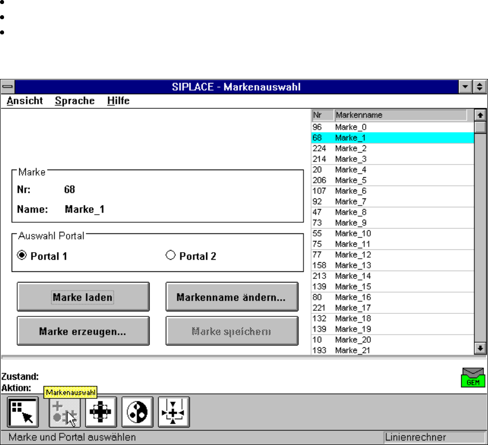 Bei Anwahl der Option ’Marke teachen’ im Menü ’Grundansicht’ werden folgende Aktionen gestartet: