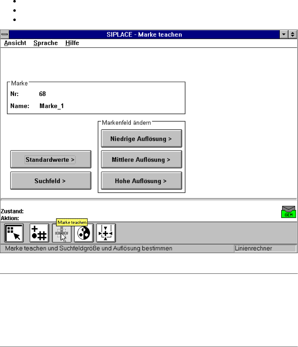 5 Visionfunktionen Betriebsanleitung SIPLACE 80S-20/F4/F5 5.5 Marke teachen Ausgabe 05/99 ab Softwareversion SR.405.xx 5 - 52 Ei nric hter Wurde eine neu e Marken nummer eingege ben, s o können S ie nur d ie Op tion ’Sta…