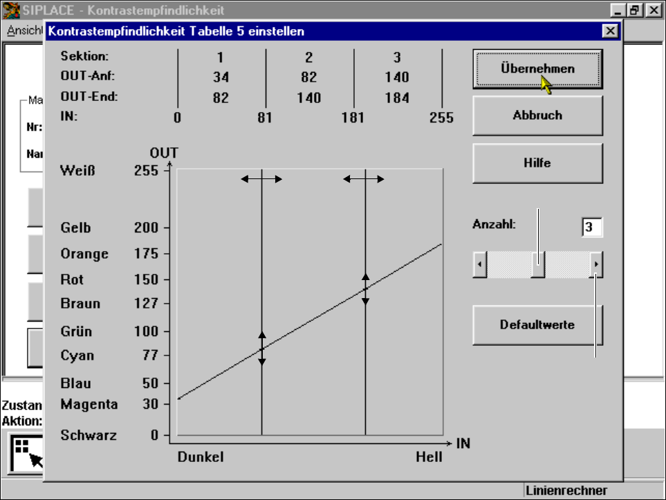 OUT-Anf: OUT-End: Wertebereiche für die Transformation der einzelnen Sektionen