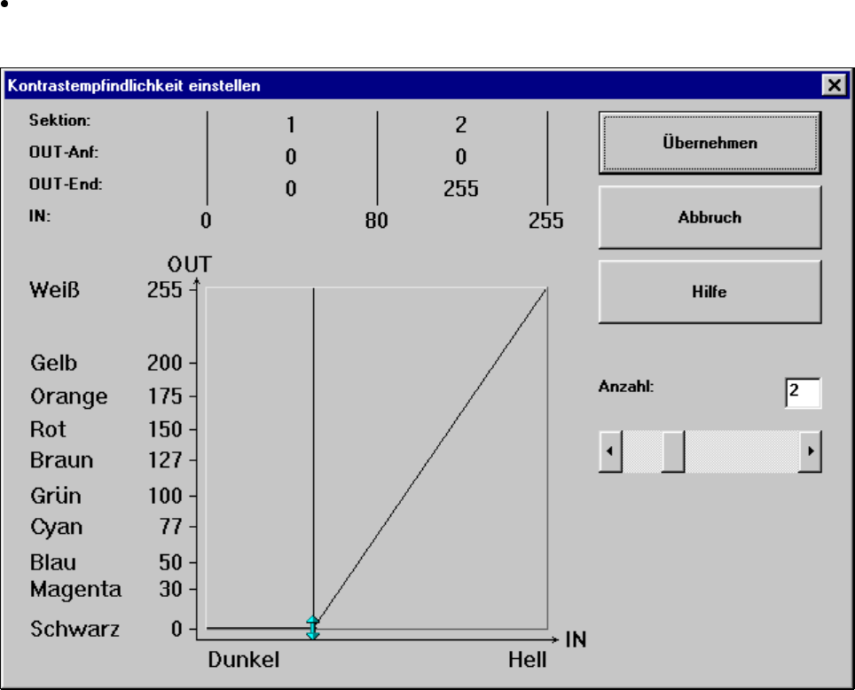 81 - 180 usw. Sie haben die Möglichkeit, diese Sektionsgrenzen zu verändern. Die Grenzen 0 und 255