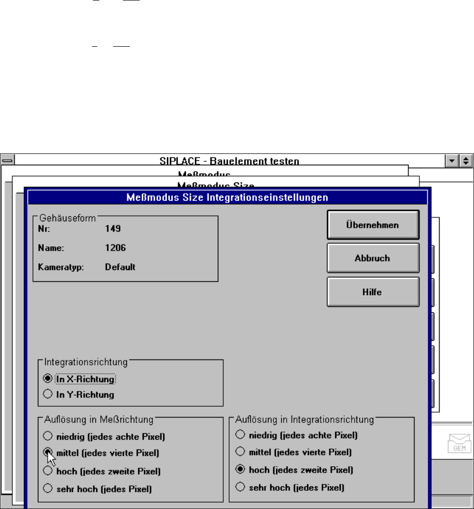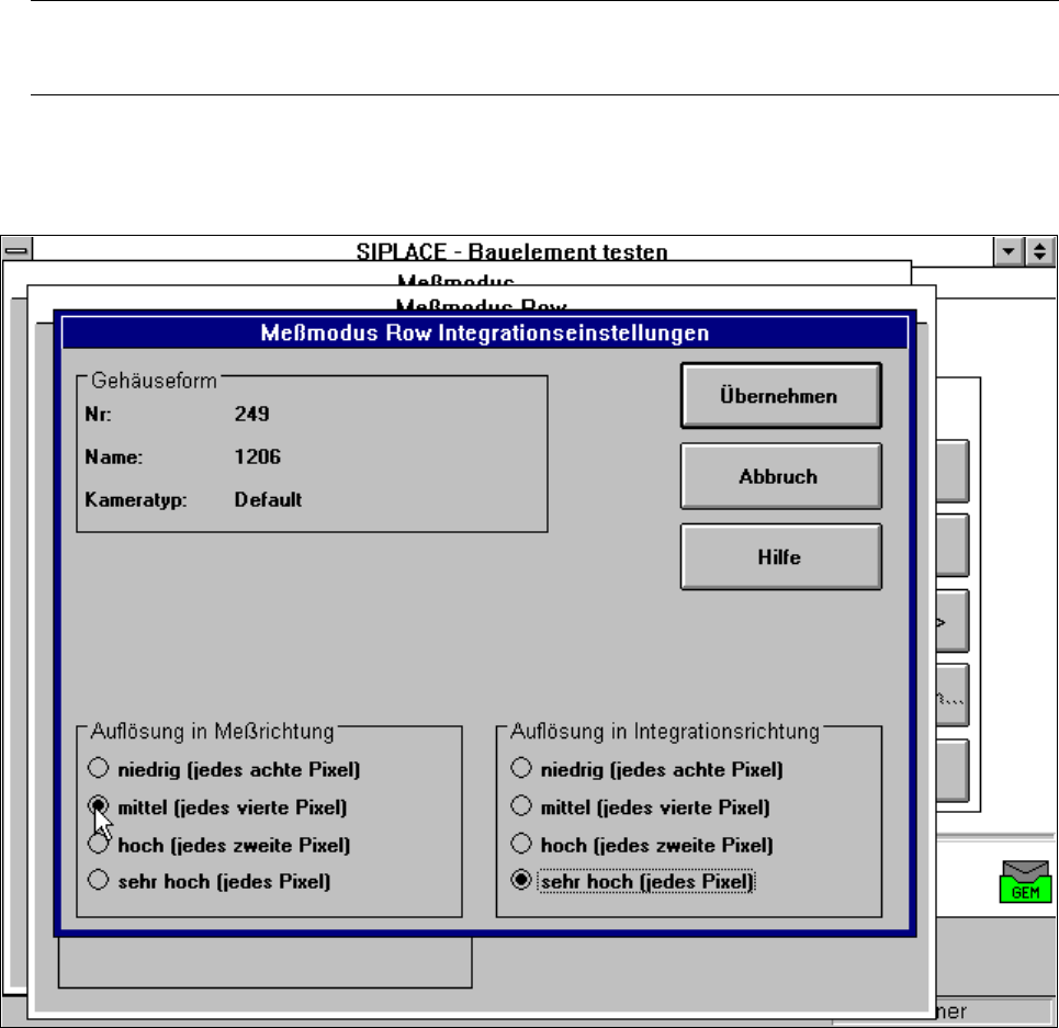 5 Visionfunktionen Betriebsanleitung SIPLACE 80S-20/F4/F5 5.6 Bauelement testen Aus gabe 05/99 ab Softwareversion SR.405.xx 5 - 120 Einr ichte r A uflösung in Integrationsrichtung Durch Wahl dieser A uflösung lass en sic…