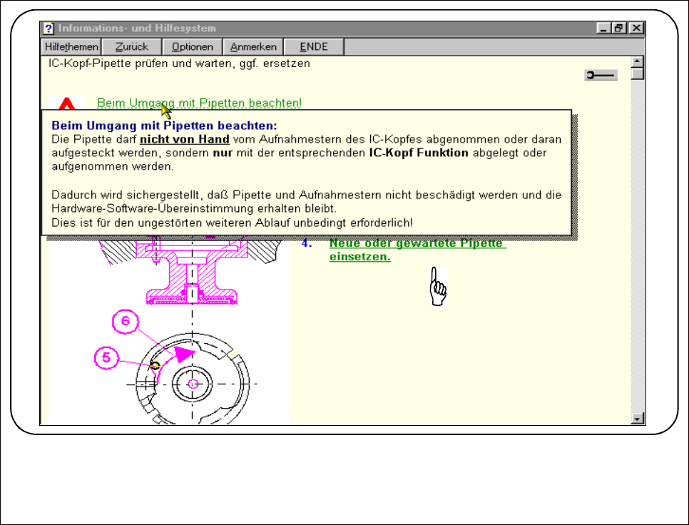 1 Hinweistext durch Anklicken. Unbedingt beachten! (Rotes Dreieck und Text grün unterstrichen).