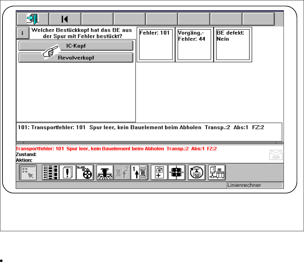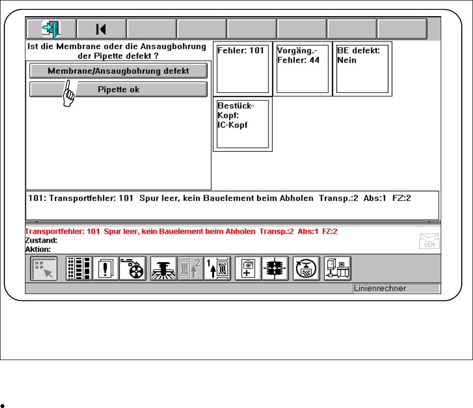 Nachfolgender Bildschirm wird dargestellt, wenn durch den Diagnoseweg die Ursache des Fehlers festge-