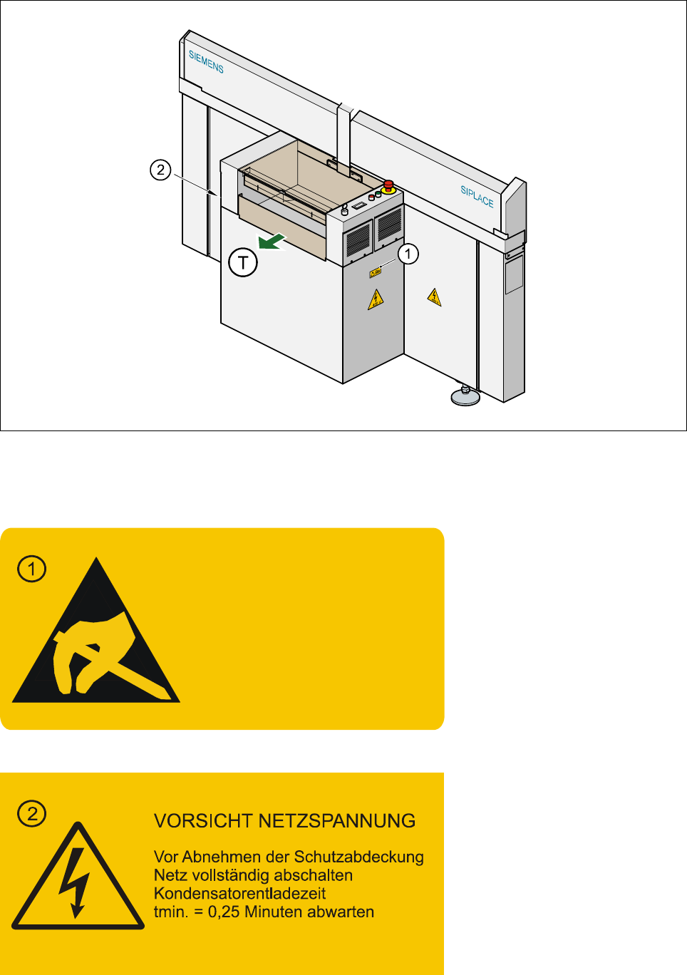 Pos. 1 der Abb. 1.1.3 über die Warnschilder an der Grundmaschine auf dem Steuereinschub