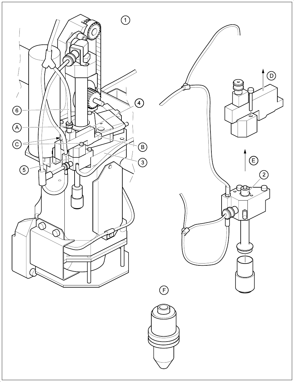 E Ziehen Sie die Vakuumdüse senkrecht nach oben heraus und warten Sie sie (siehe Abschnitt 9.6.5.2).
