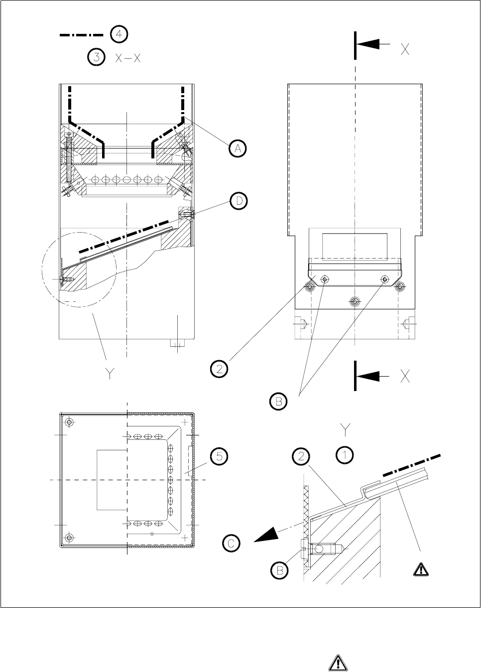 3Schnitt X-X 4Zu reinigende Flächen, Glasplatte
