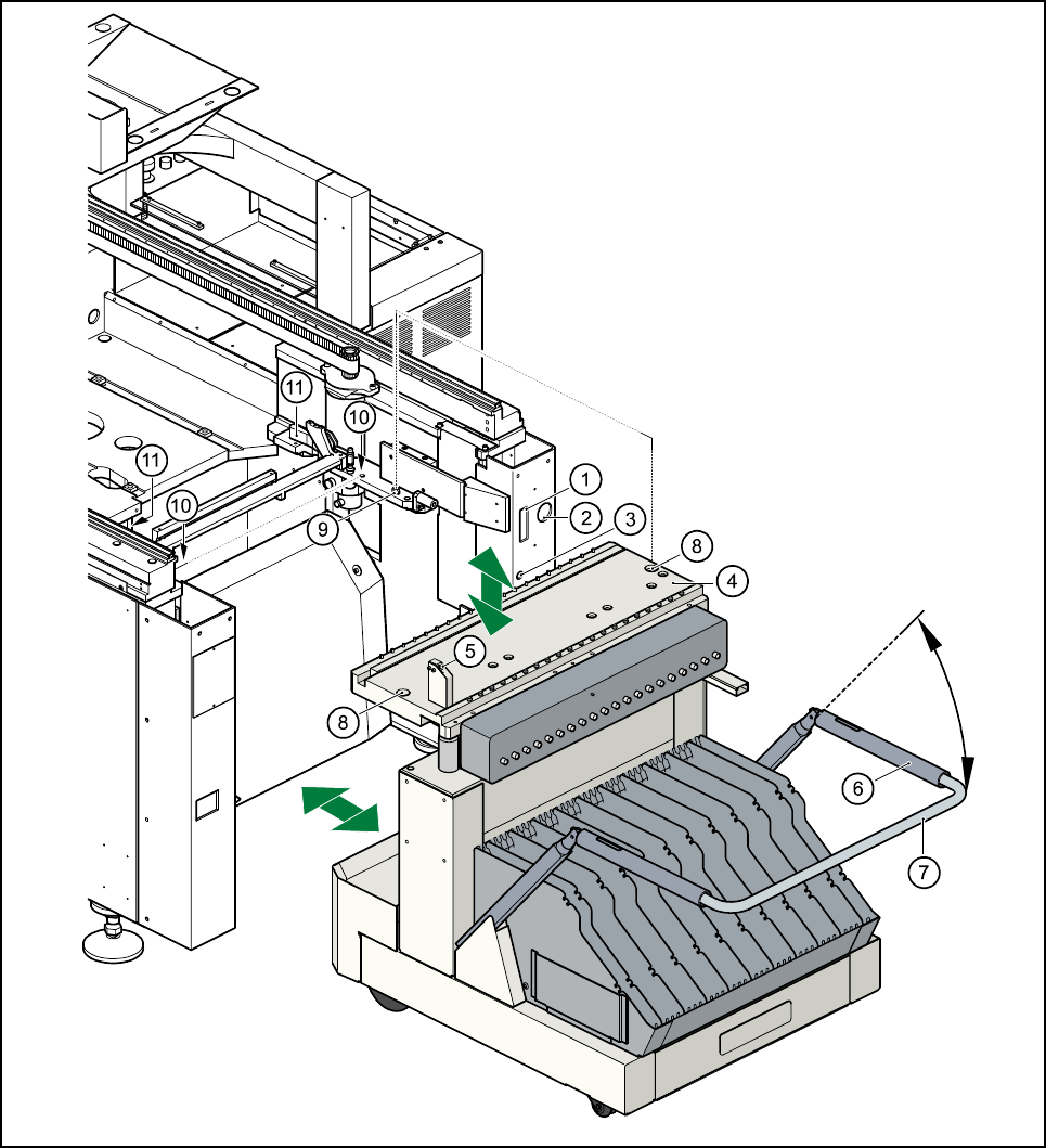 ● Klappen Sie den Bügel (Pos. 7) des BE-Wechseltisches nach oben.