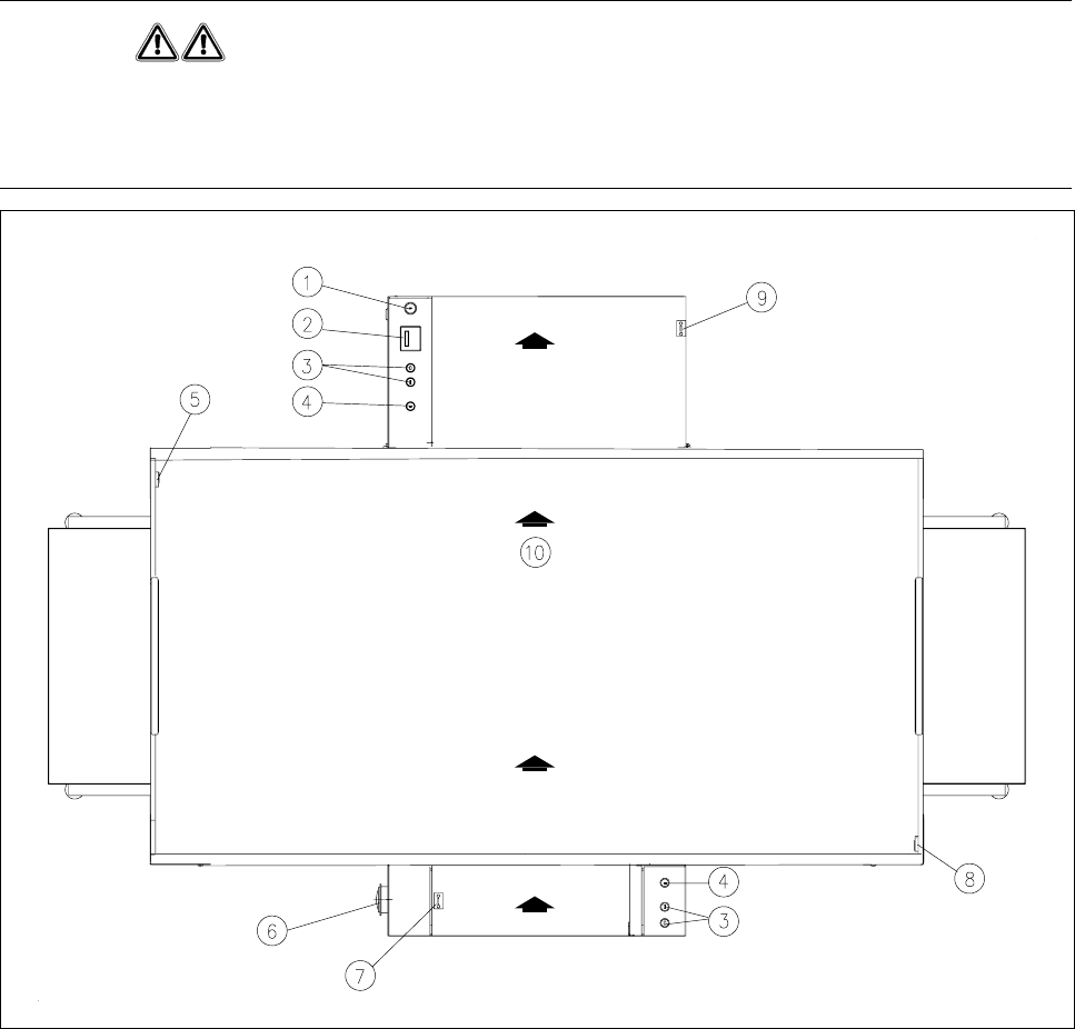 9 Haubenschalter Abdeckung Ausgabeband 10 Transportrichtung