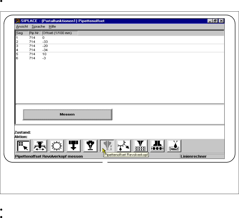 Abholposition sämtlicher Pipetten werden gemessen. Die Meßwerte für Abholposition offen und Abholpo-