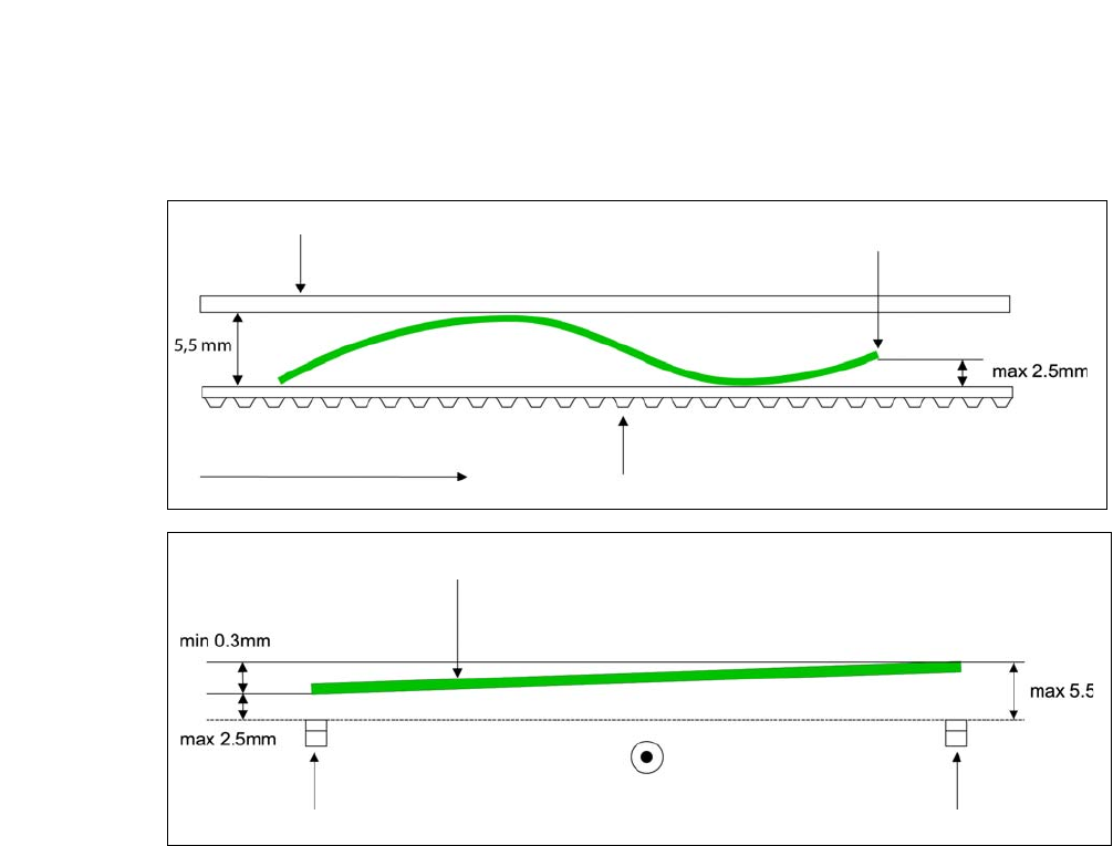 LP-Wölbung in Transportrichtung + LP-Dicke < 5,5 mm. Aufbiegung vordere Leiterplattenkante