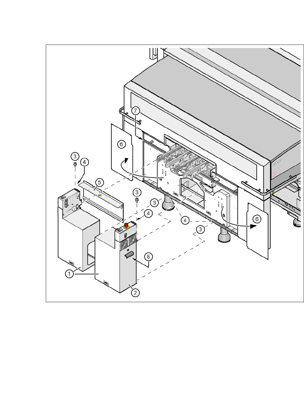 Entfernen Sie beide Türen (Pos. 2 in Abb. 5.5 - 8) vom Anbausatz (Pos. 1).
