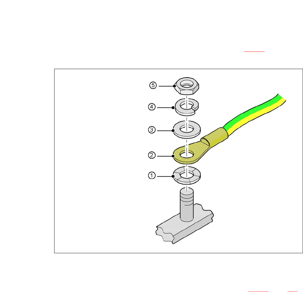 Befestigen Sie die beiden Erdungskabel für die Türen (Pos. 4 in Abb. 5.5 - 14) auf folgende
