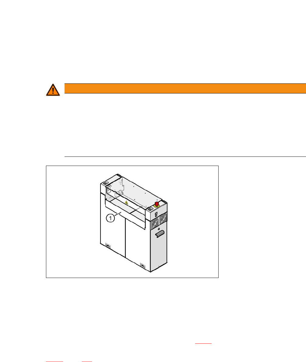 Überprüfen Sie die Funktion der Schutzhaubenschalter (Pos. 7 in Abb. 5.5 - 15, Seite 294).