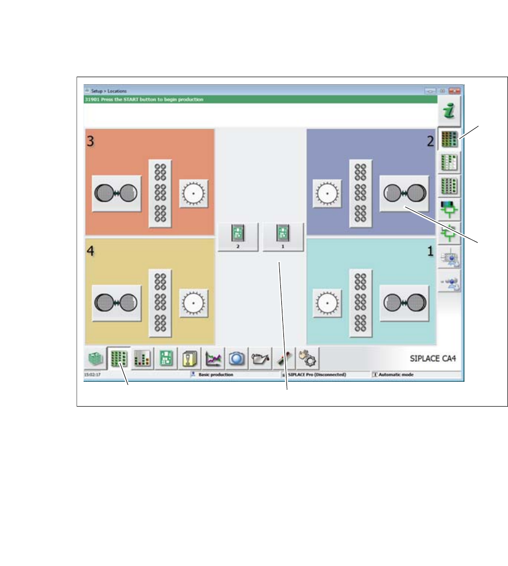 Abb. 6.2 - 3 Bedienoberfläche in der Ansicht "Zuführmodul, Bauelemente und Pipetten" (am Beispiel der SIPLACE