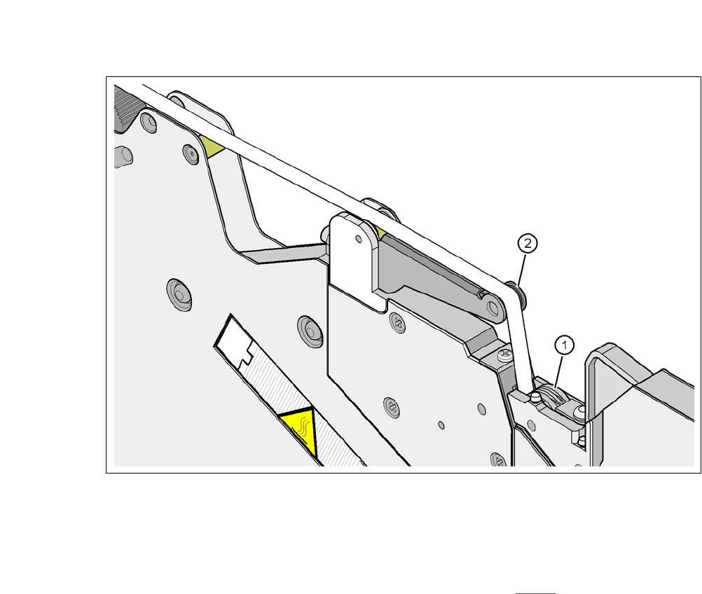 Führen Sie die Deckfolie über die Deckfolienschwinge (Pos. 2 in Abb. 6.7 - 7) weiter bis zu
