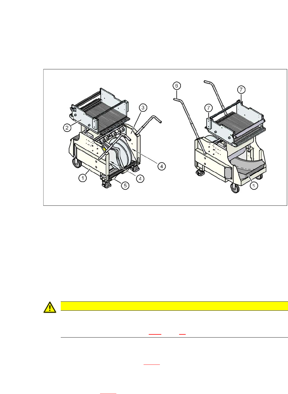 Wenn Sie den Gurtabfallbehälter aus dem BE-Wagen ziehen, beachten Sie den Si-