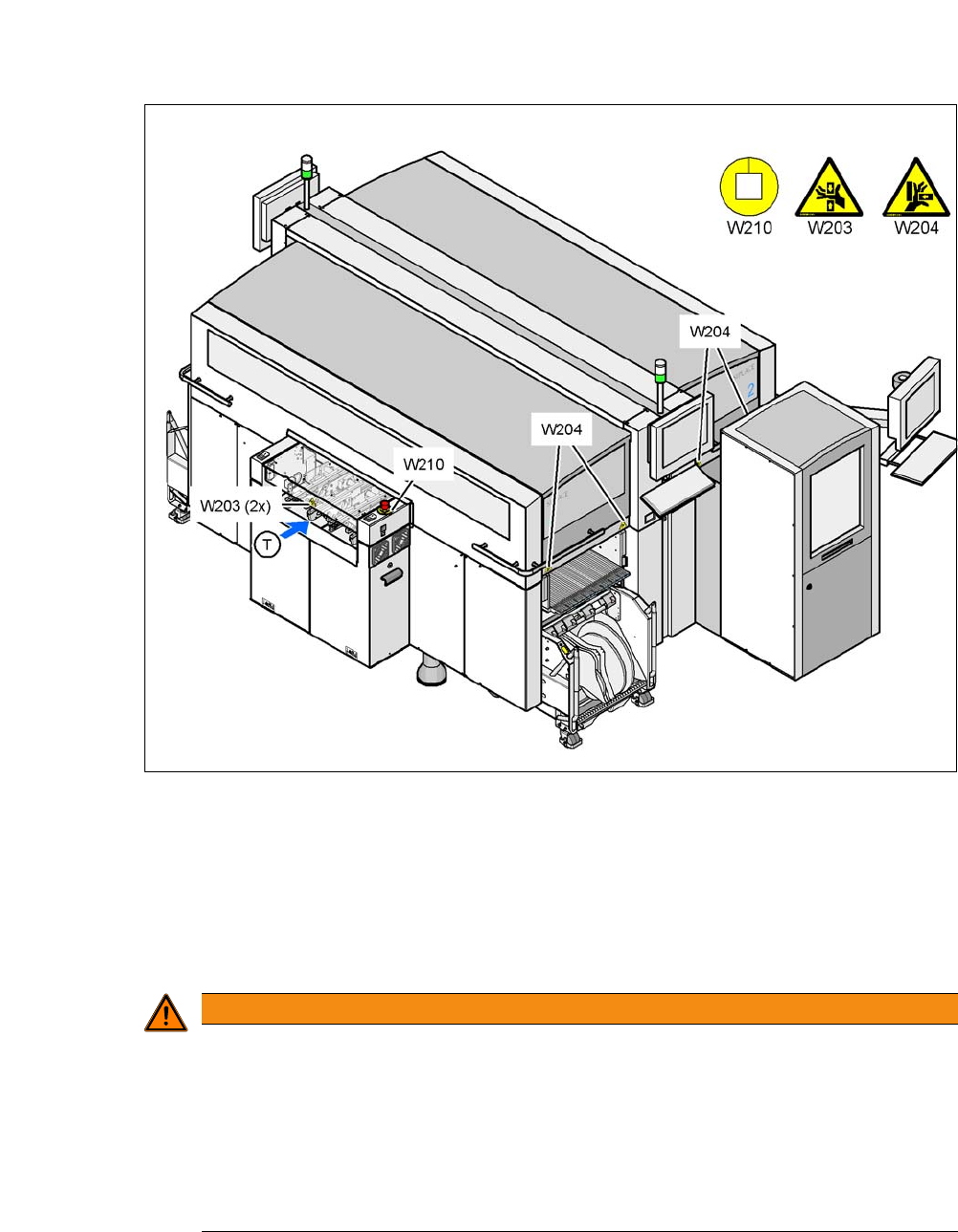 2.2.1 Warnschilder W201, W203, W204 und W210 am Bestückautomaten