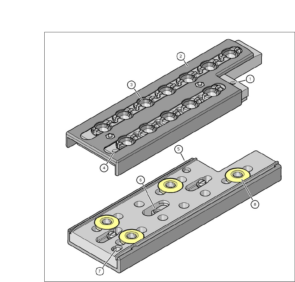 (7) Langloch für Zylinderstift zum Zentrieren der Magazine