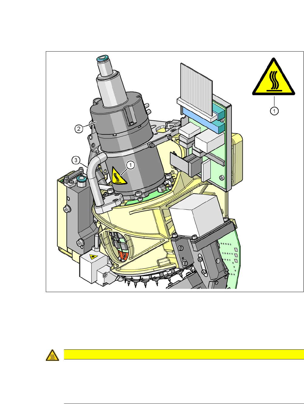 Vorsicht beim Berühren der Teile.