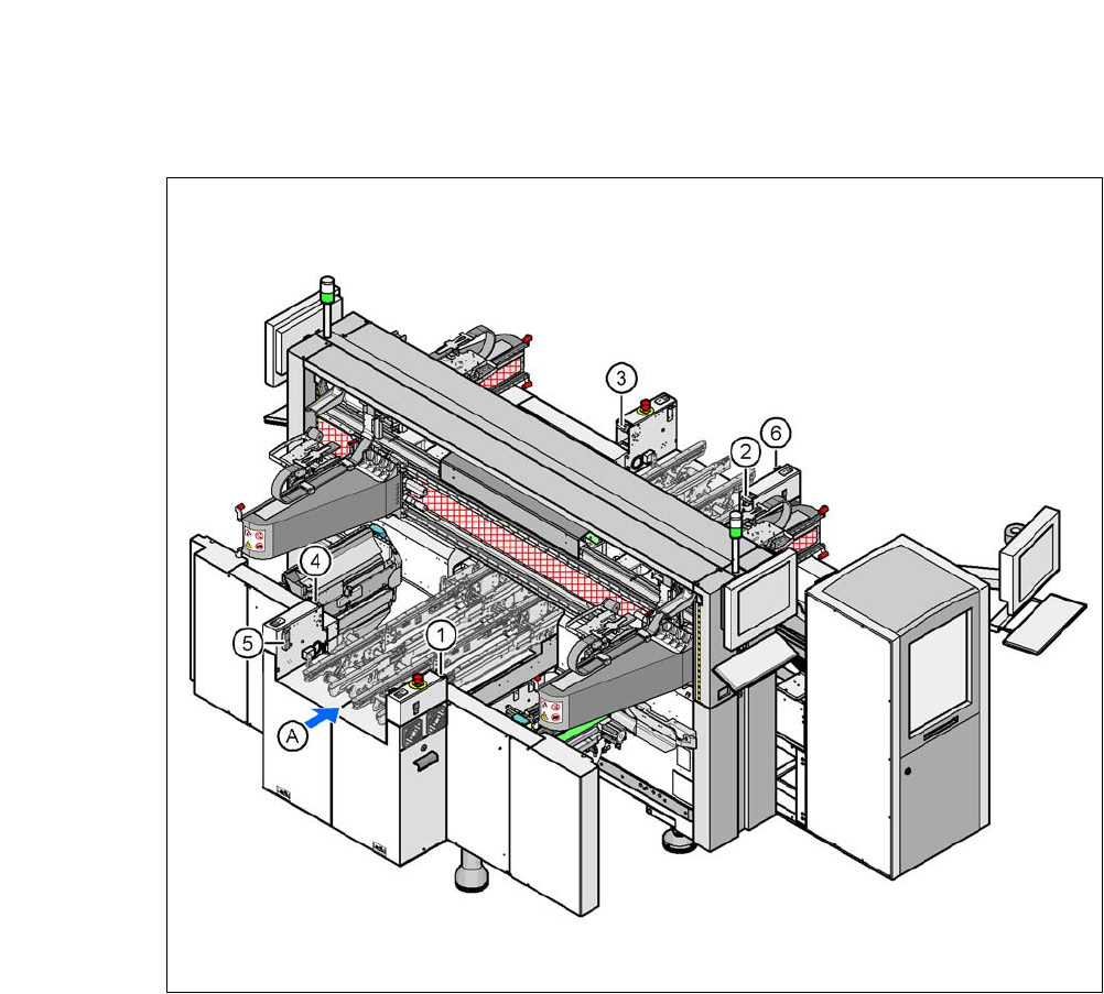 Betriebsanleitung SIPLACE CA-Serie 2 Betriebssicherheit Ab Softwareversion SR 708.0 Ausgabe 12/2014 DE -DR AFT 2.8 Sicherheitseinrichtungen 91 2.8.2.4 Lage von Schutzschaltern am Automaten 2 Abb. 2.8 - 5 Lage von Schutzs…