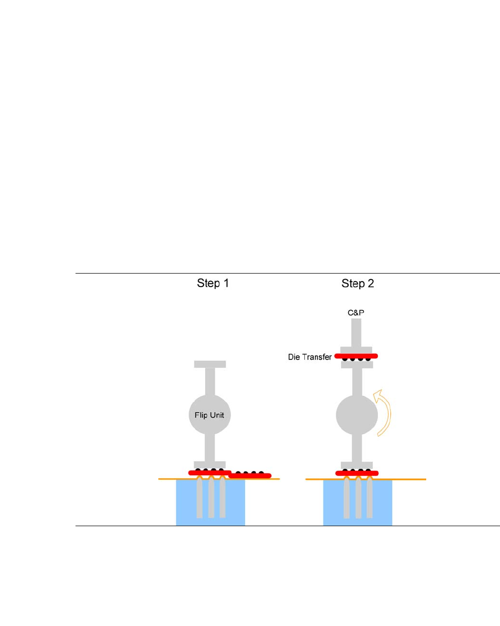 – Step 2: Das Die wird um 180° gedreht und an den Bestückkopf übergeben. Parallel dazu wird